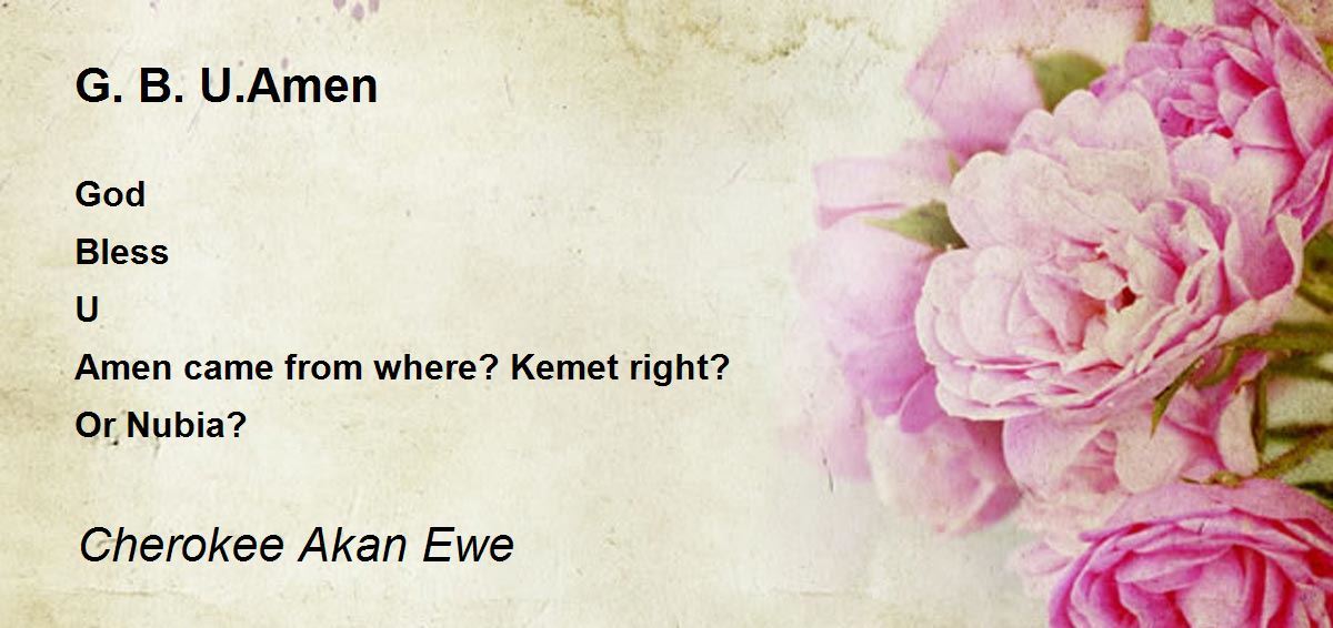 God Bless U Amen came from where? Kemet right? Or Nubia?