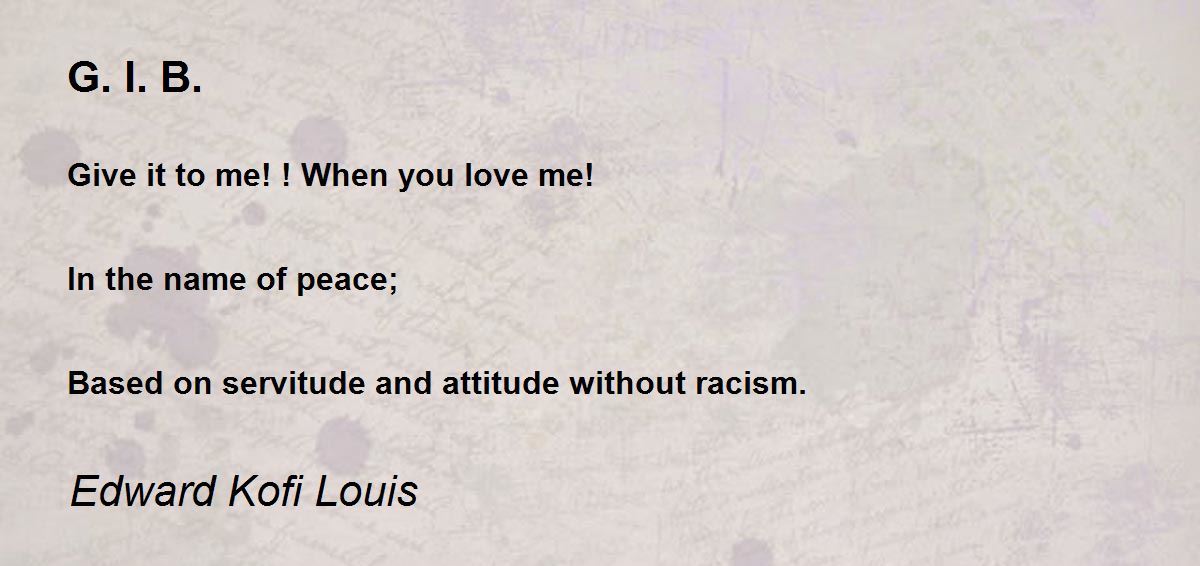 Give it to me! ! When you love me! In the name of peace; Based on servitude and attitude without racism.