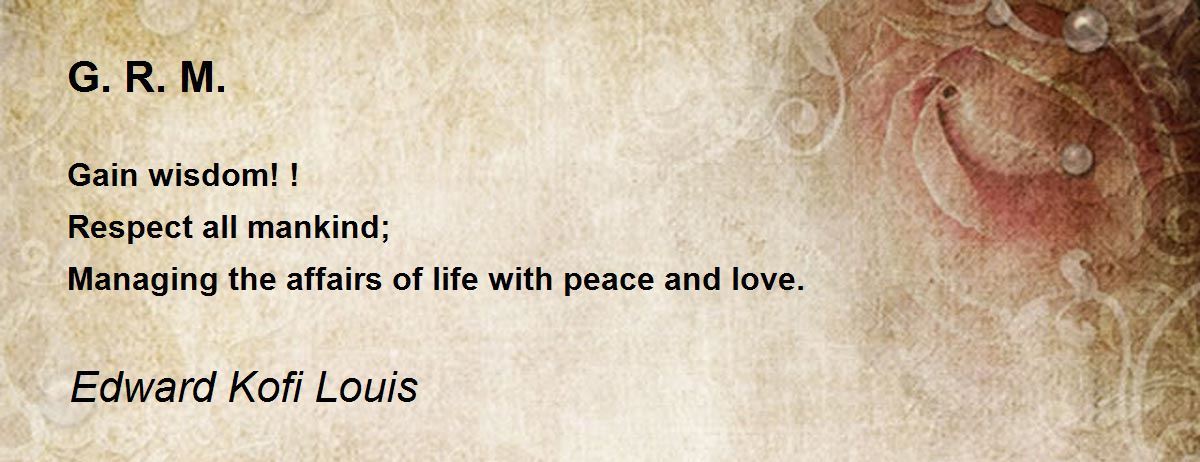 Gain wisdom! ! Respect all mankind; Managing the affairs of life with peace and love.
