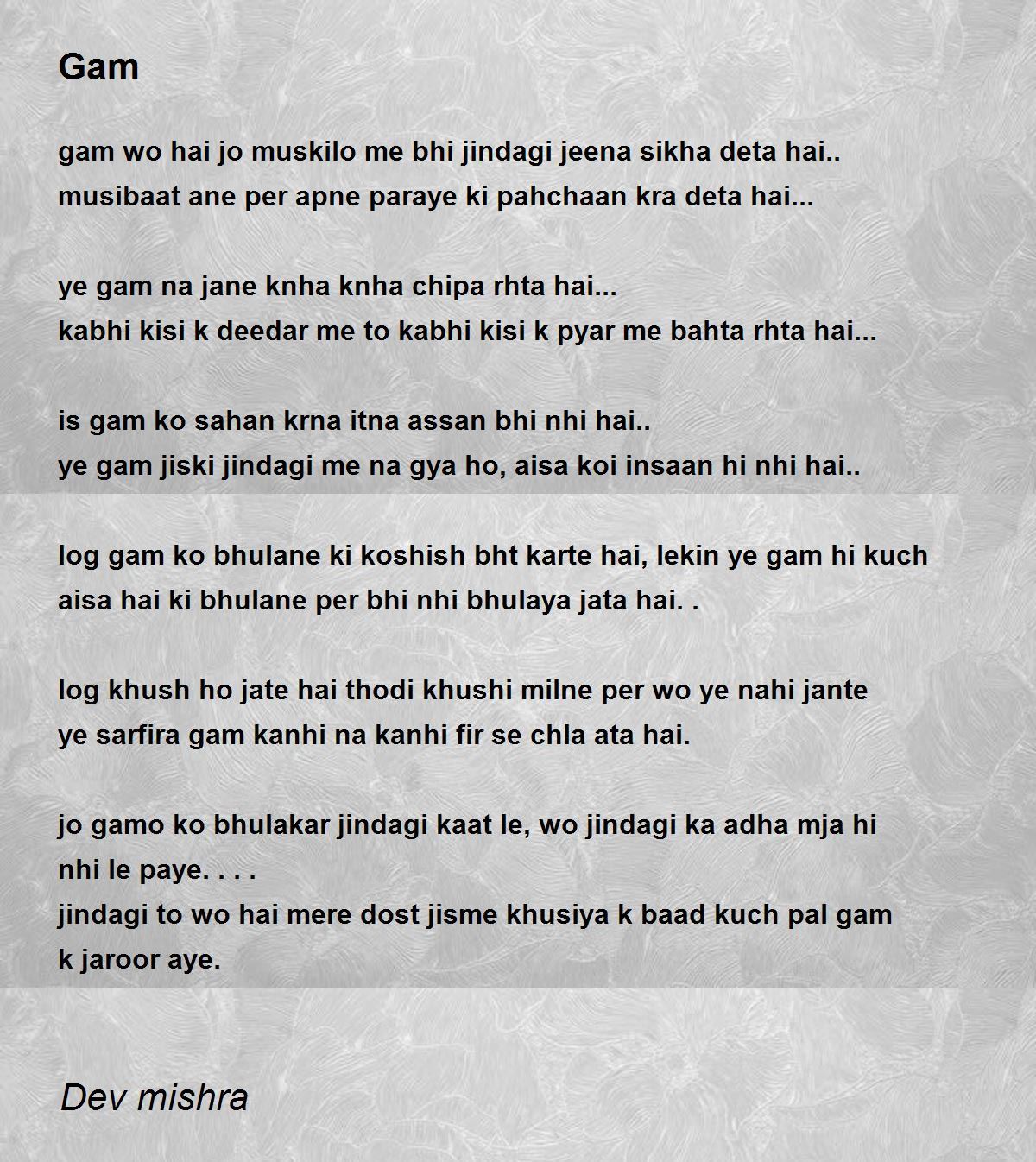 ye gam jiski jindagi me na gya ho, aisa koi insaan hi nhi hai..