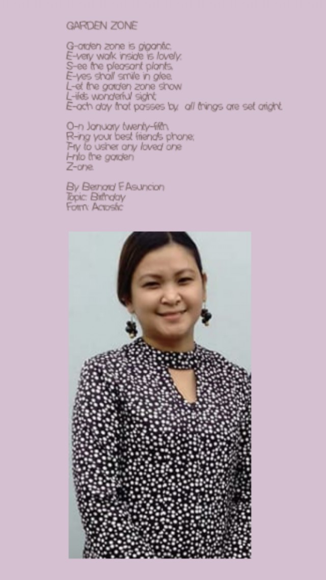 Very nice and another creative acrostic using names. I just wrote one after I read your acrostic poem- it is a challenging poetry form indeed. Brilliant work!