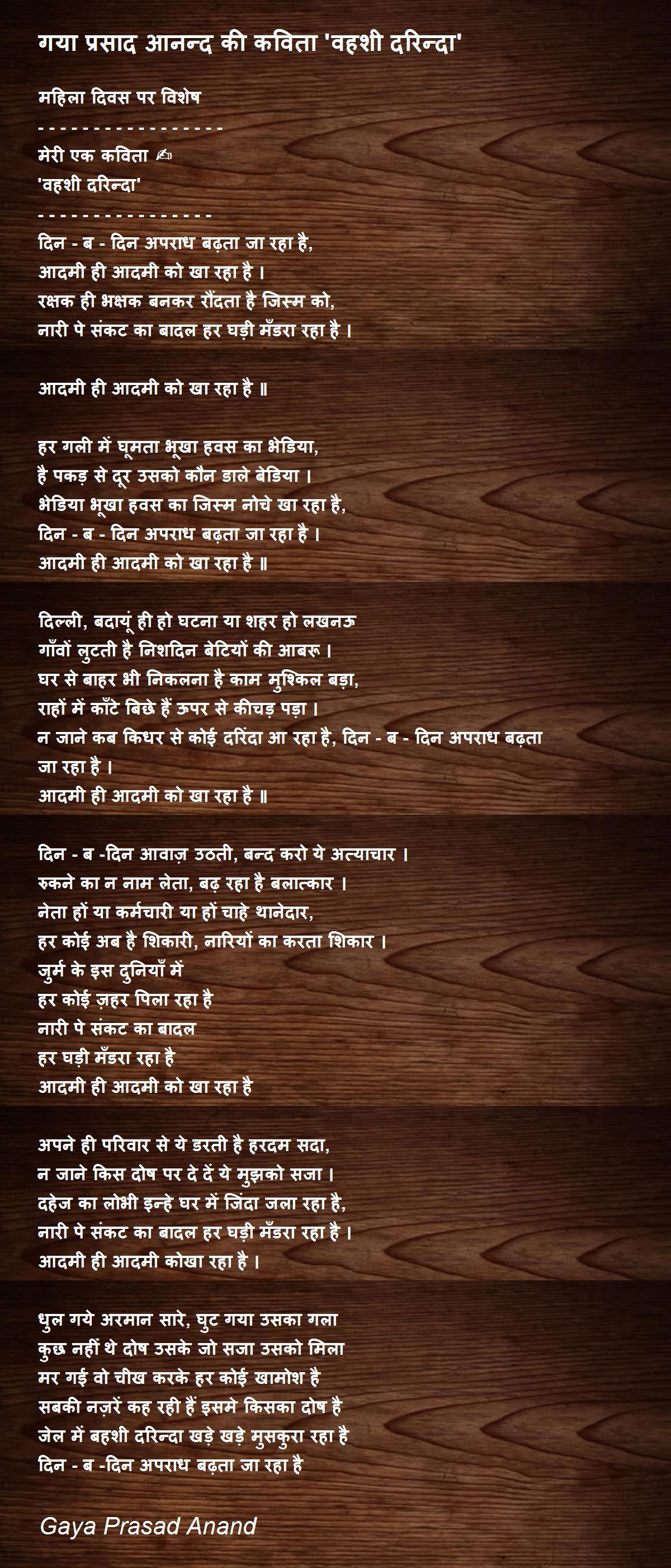न जाने कब किधर से कोई दरिंदा आ रहा है, दिन - ब -दिन अपराध बढ़ता जा रहा है ।