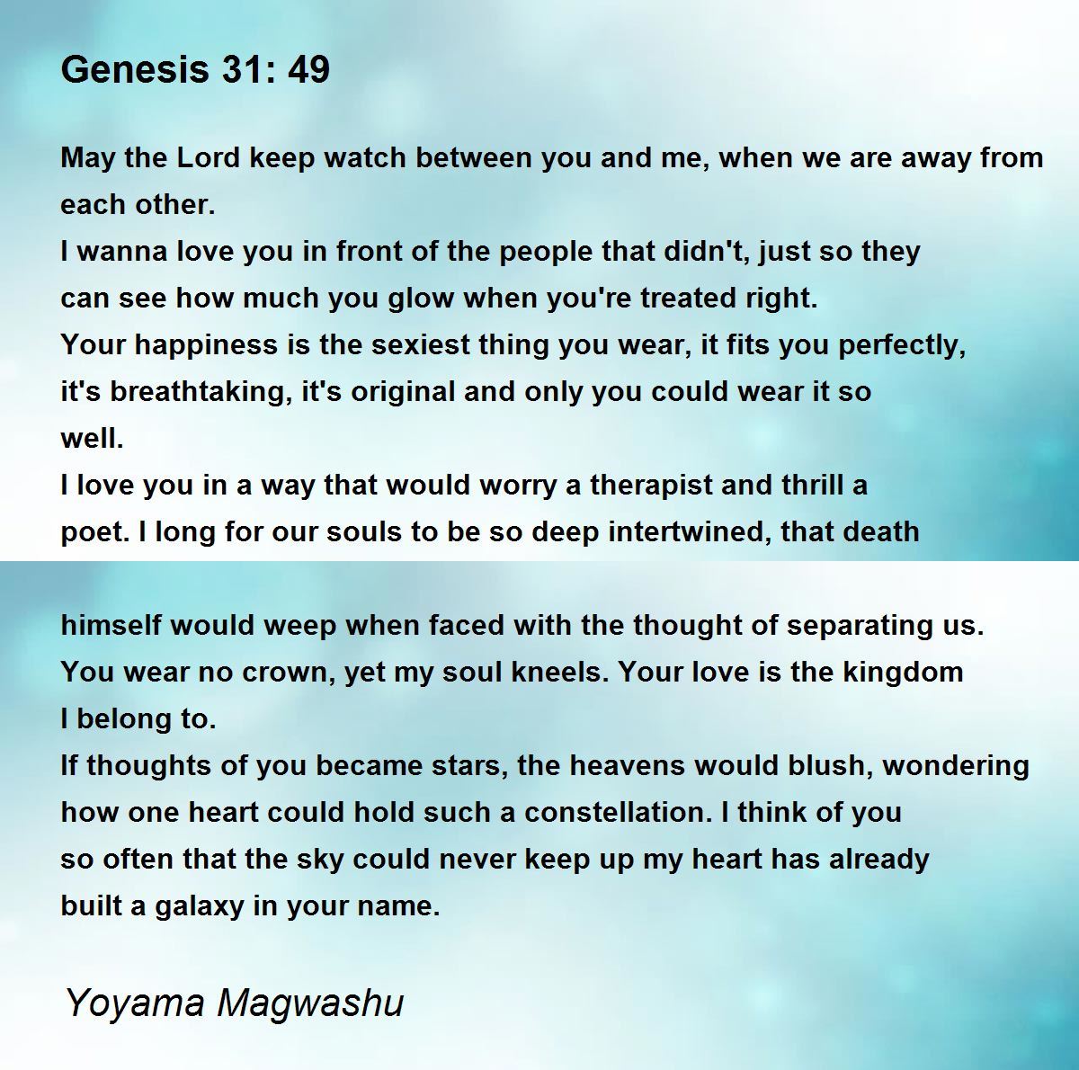 May the Lord keep watch between you and me, when we are away from each other.