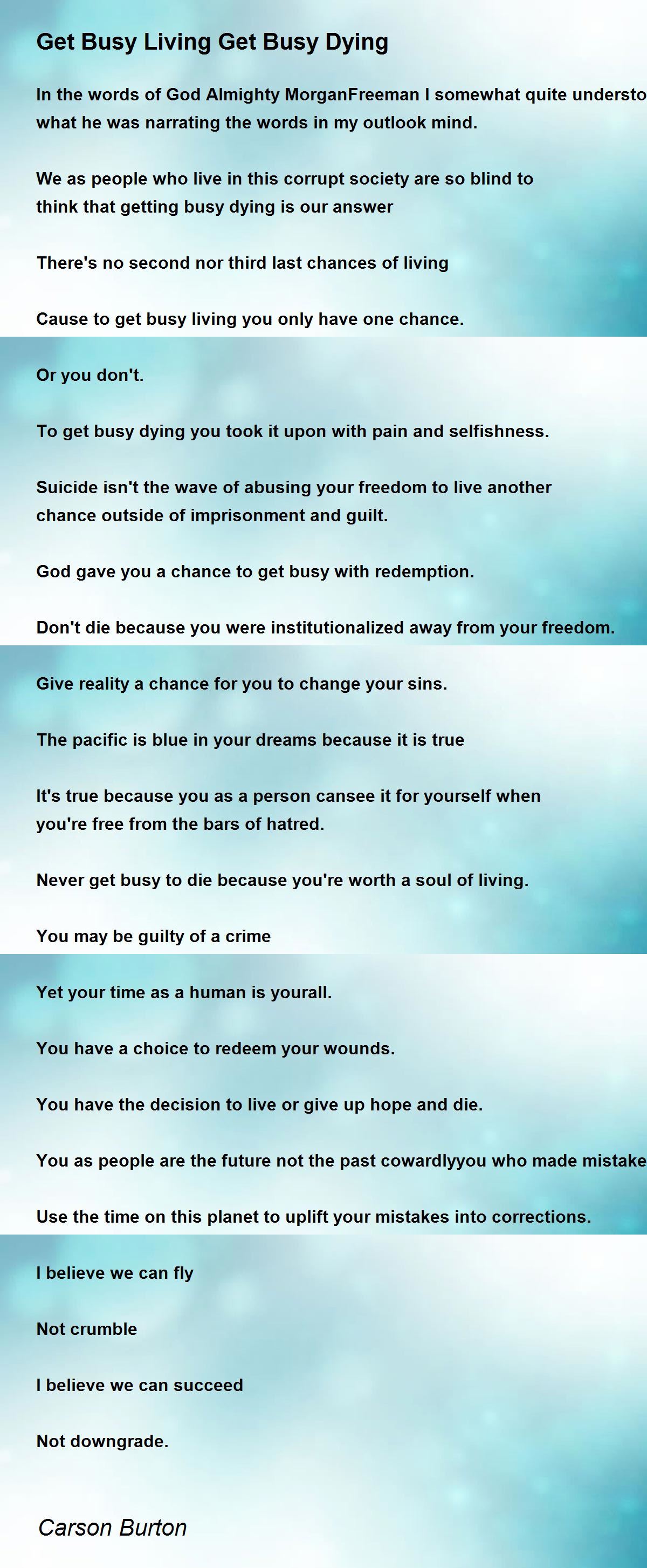 We as people who live in this corrupt society are so blind to think that getting busy dying is our answer