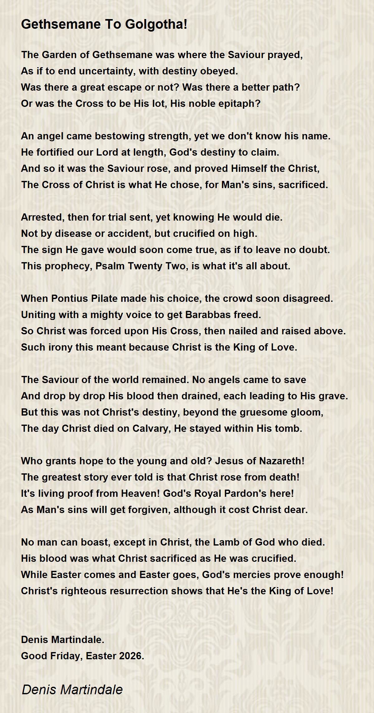 Or was the Cross to be His lot, His noble epitaph?