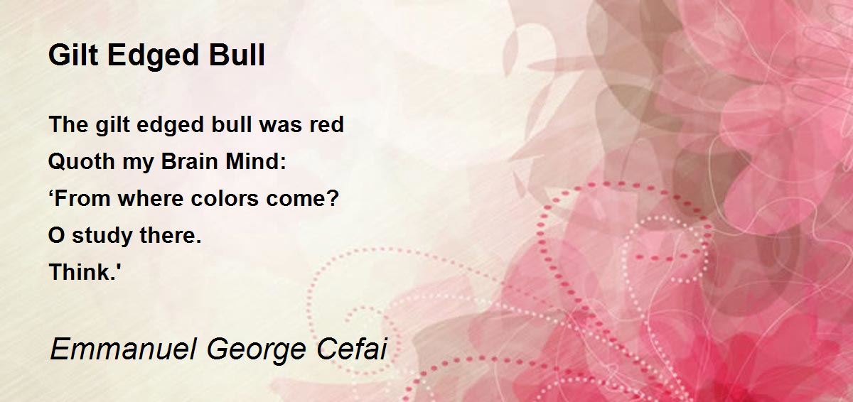 The gilt edged bull was red Quoth my Brain Mind: ‘From where colors come? O study there. Think.'