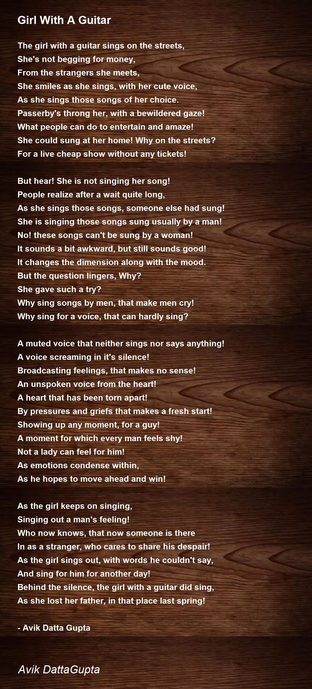 Behind the silence, the girl with a guitar did sing,