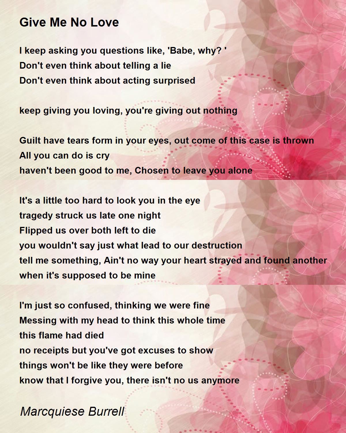 keep giving you loving, you're giving out nothing