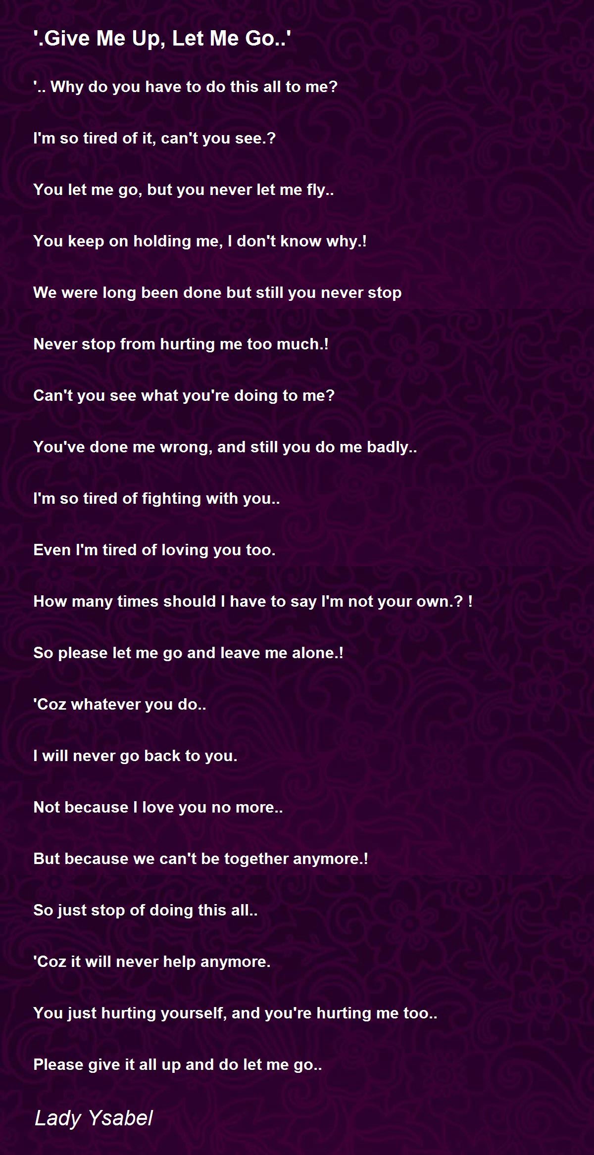 Please give it all up and do let me go..