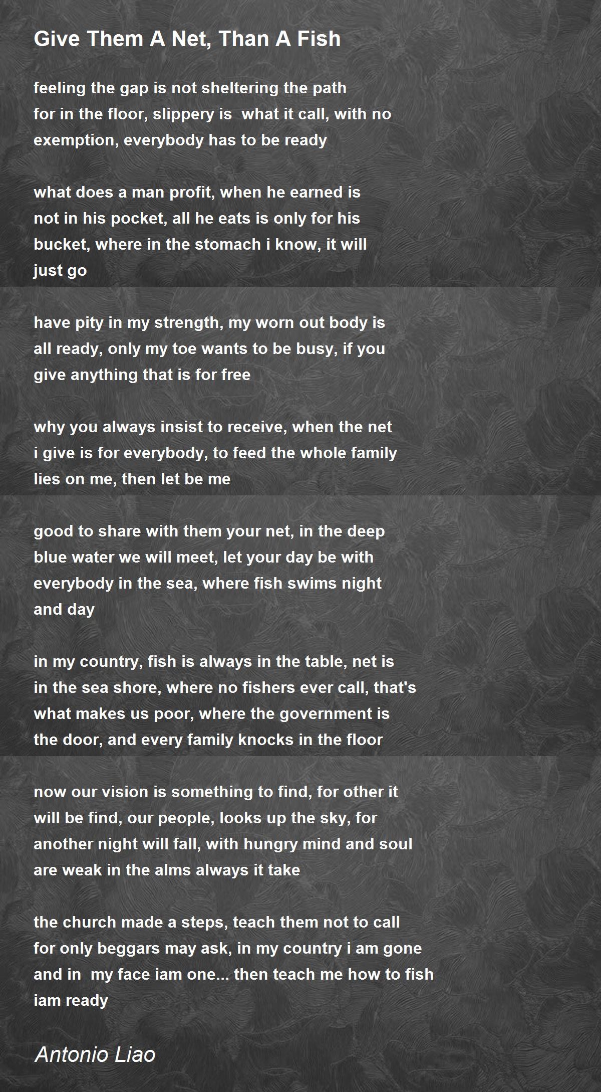 'good to share with them your net, in the deep blue water we will meet, let your day be with everybody in the sea'... very wise words indeed...you speak out bold and frank here, Anto...10
