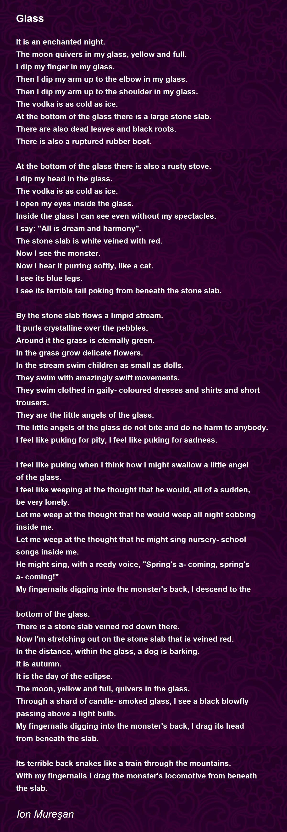 My fingernails digging into the monster's back, I descend to the bottom of the glass.