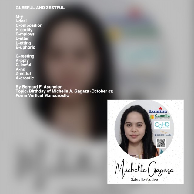 Topic: Birthday of Michelle A. Gagaza (October 07)