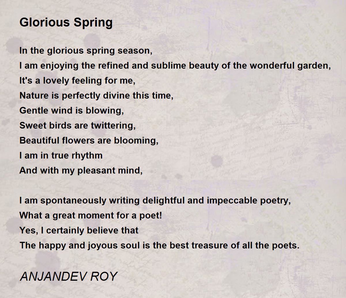 Yes, Spring is a time of renewal and new growth and a time of creativity for poets. Well penned AR.