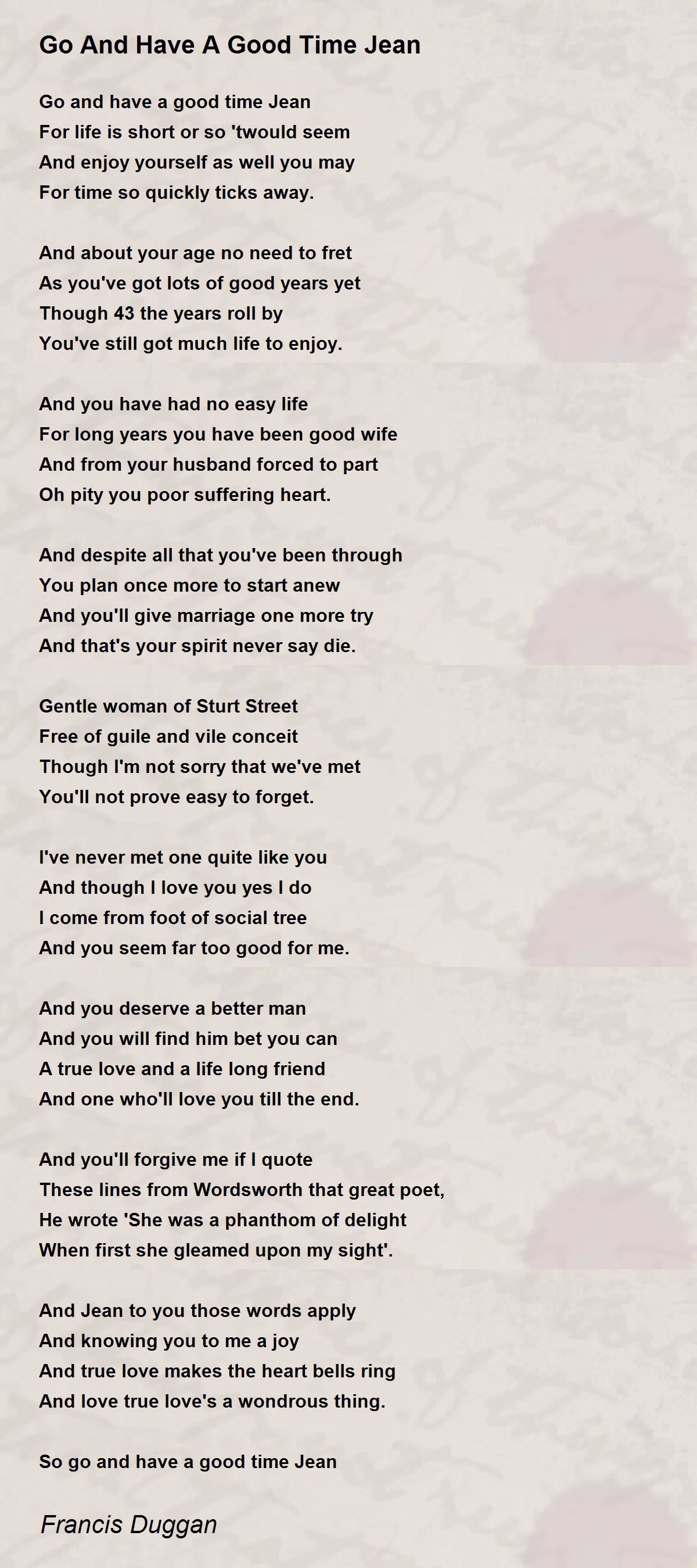 Go and have a good time Jean