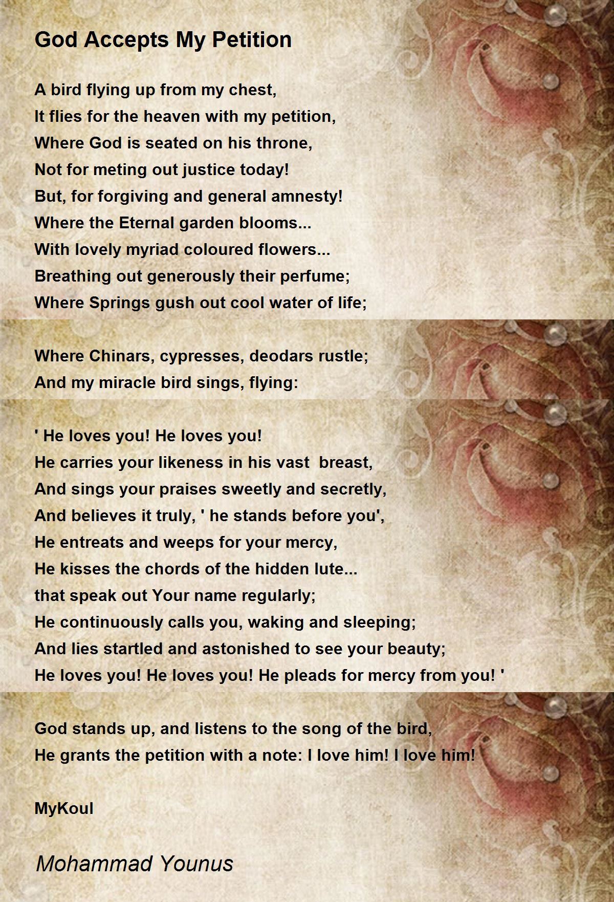 It flies for the heaven with my petition,