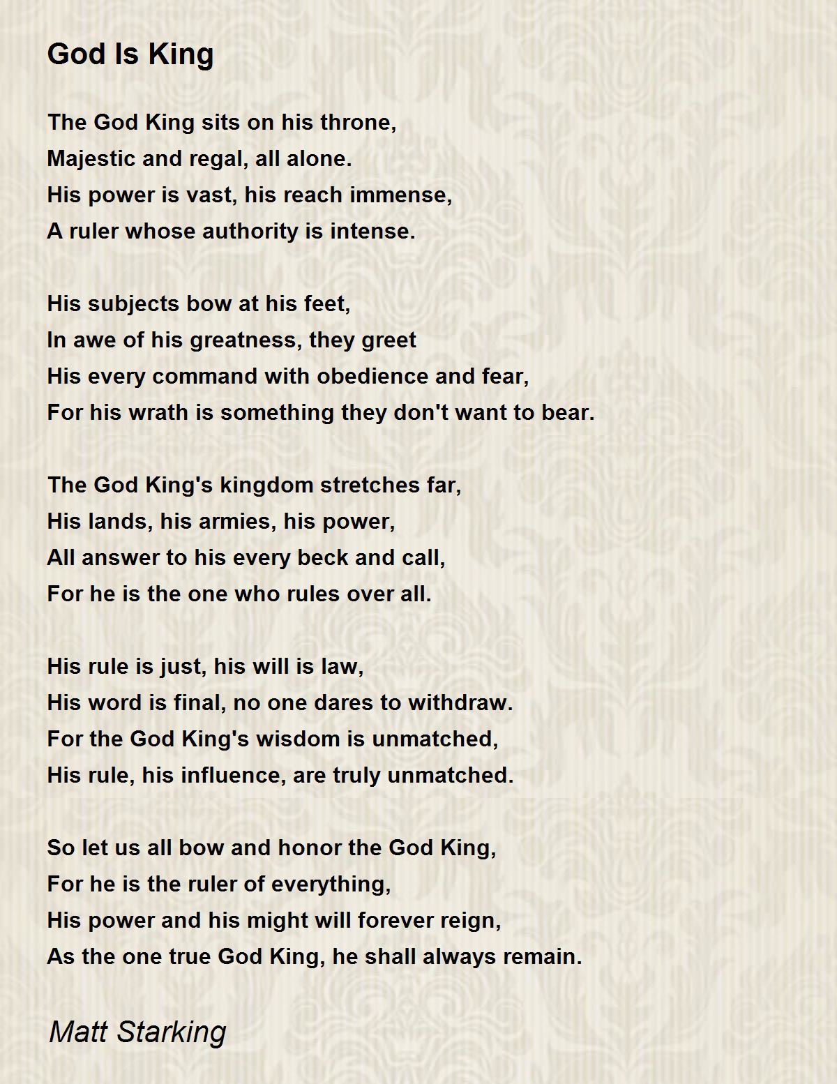 As the one true God King, he shall always remain.
