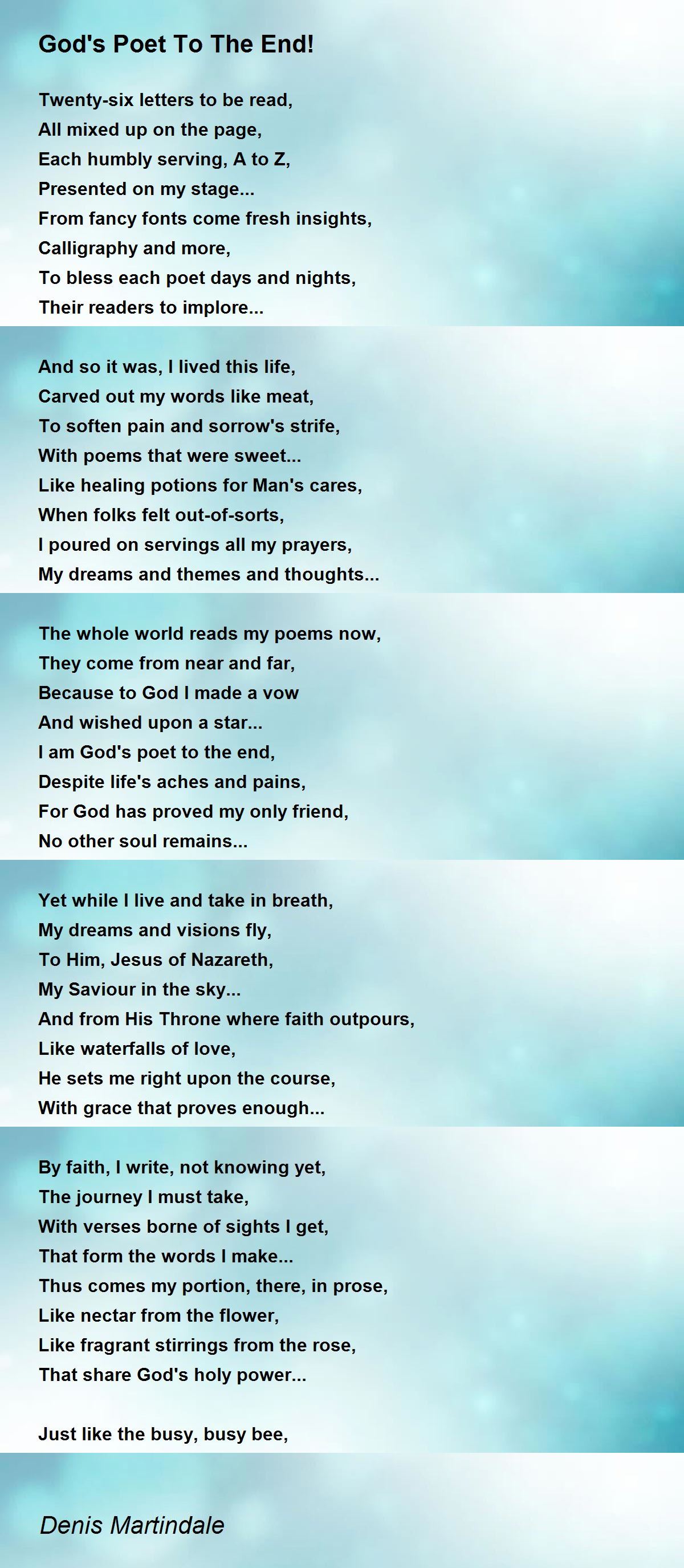I am God's poet to the end,