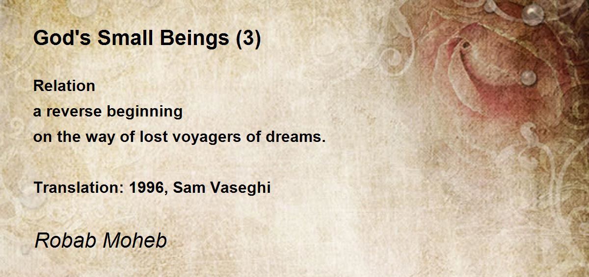 Relation a reverse beginning on the way of lost voyagers of dreams. Translation: 1996, Sam Vaseghi