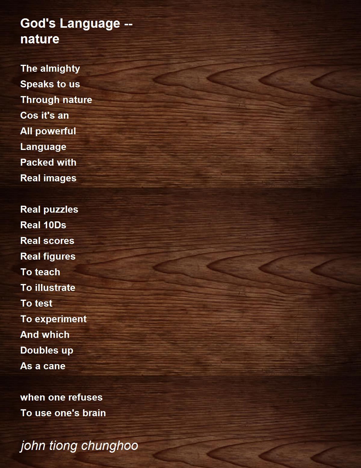 Absolutely we are part of that language, I do understand your lovely poem, but how many people won't listen to what God says, so many persons do not believe in God, for instance: so many divorces in today's life, they have forgotten what God said about that,