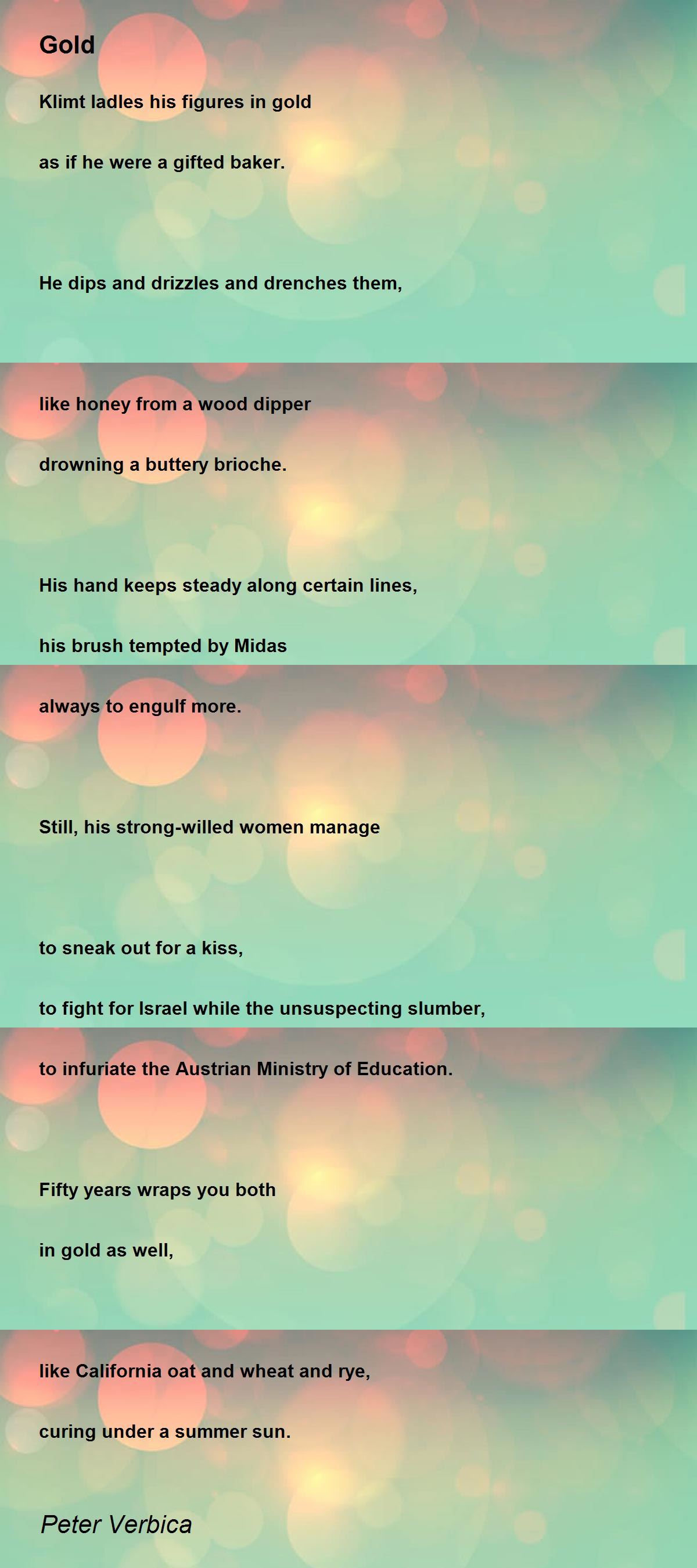 ["Gold" first appeared in the CatheXis Northwest Press, September issue,2018]