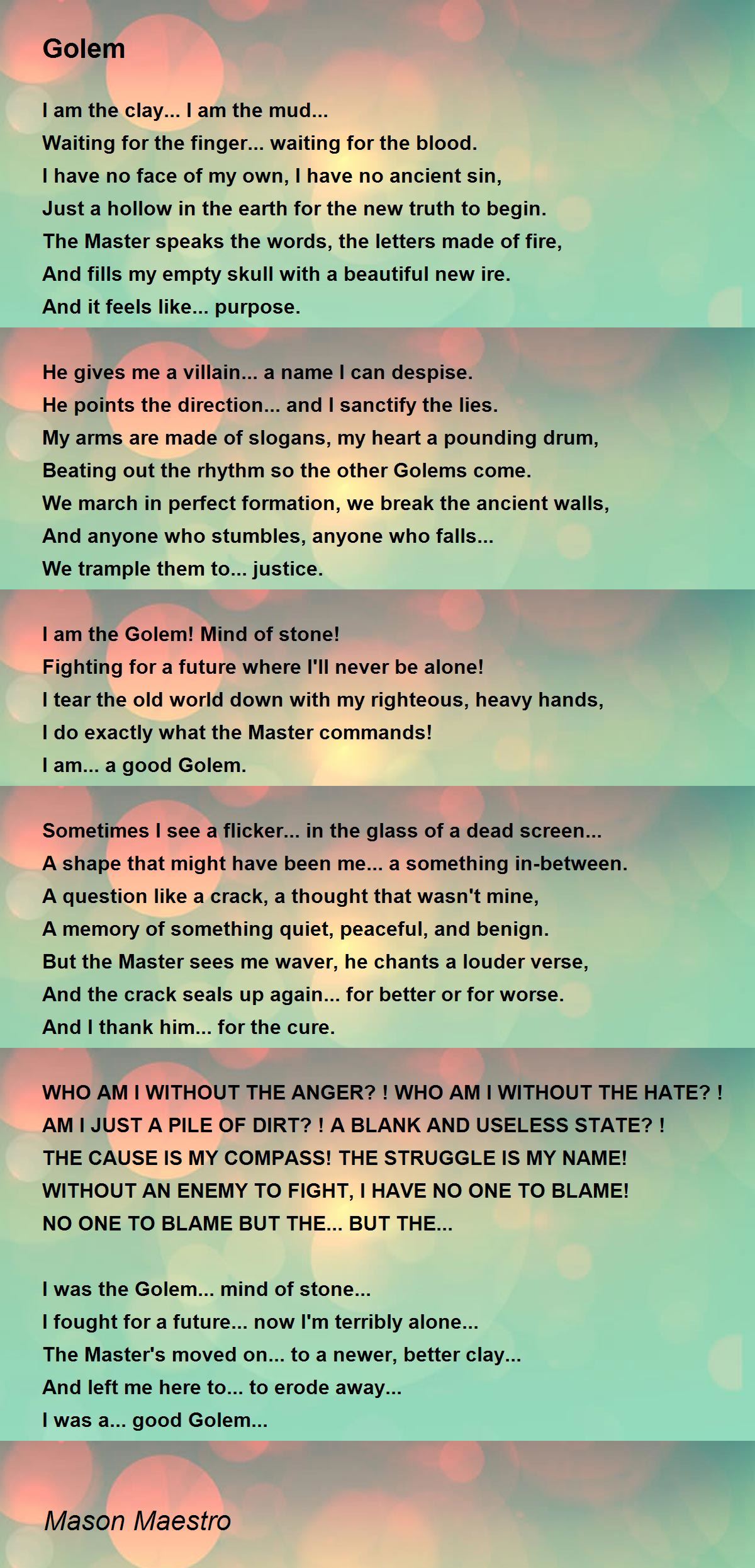 I was the Golem... mind of stone...
