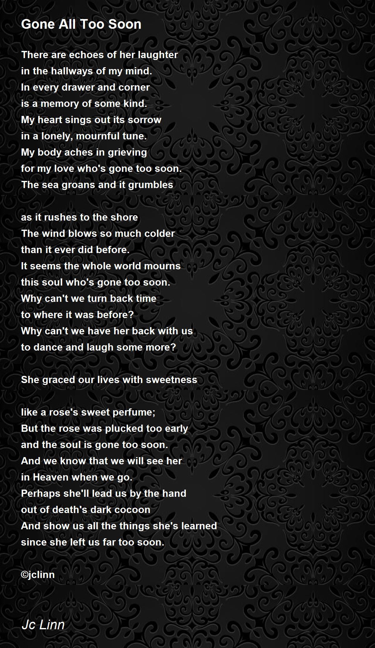 and the soul is gone too soon.