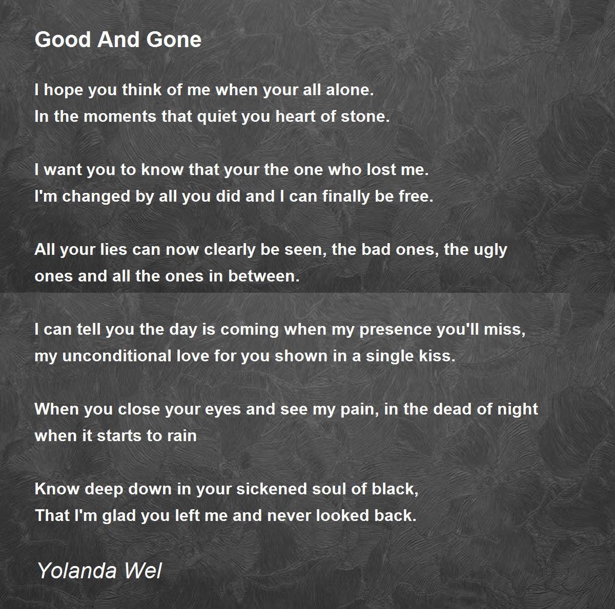 That I'm glad you left me and never looked back.