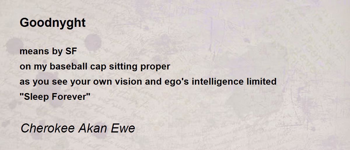 means by SF on my baseball cap sitting proper as you see your own vision and ego's intelligence limited "Sleep Forever"