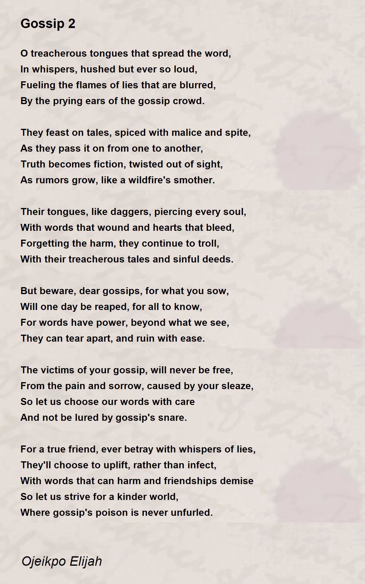But beware, dear gossips, for what you sow,