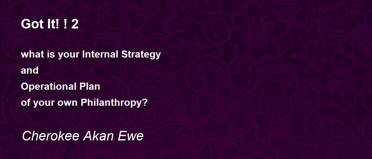 what is your Internal Strategy and Operational Plan of your own Philanthropy?