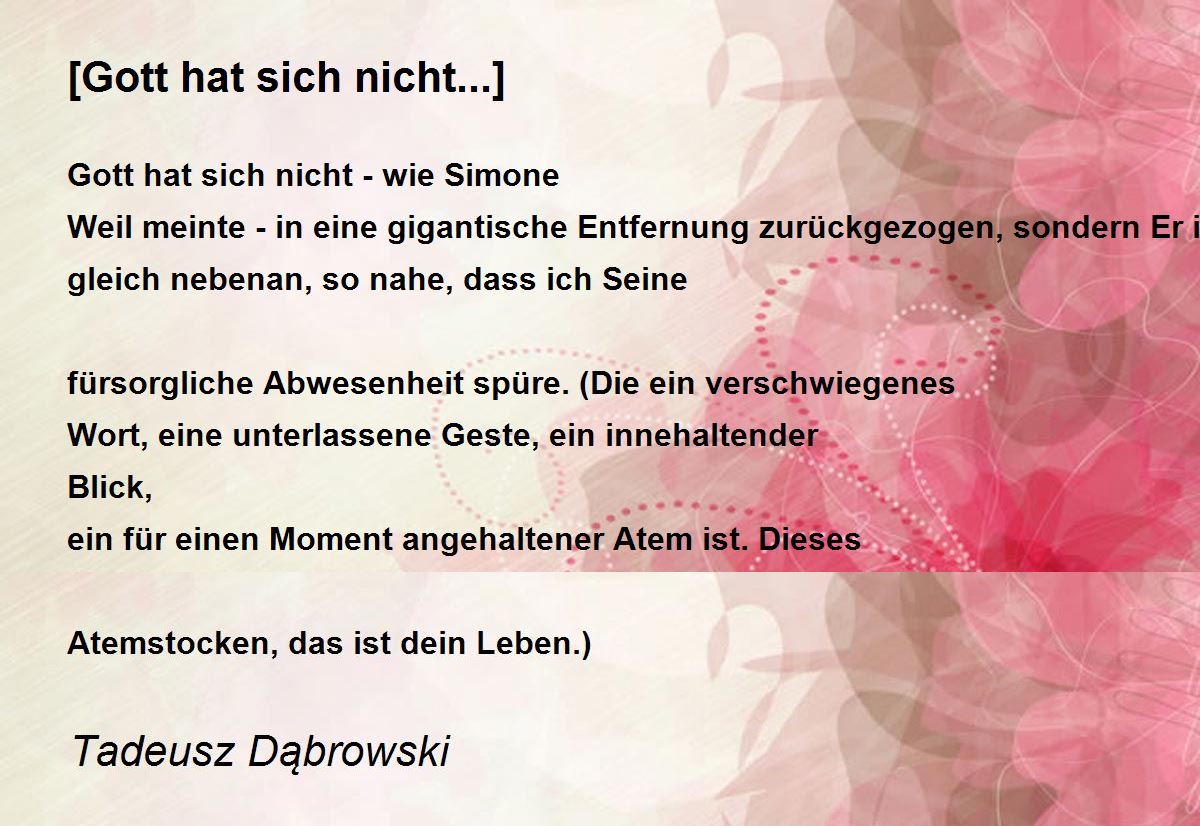 fürsorgliche Abwesenheit spüre. (Die ein verschwiegenes