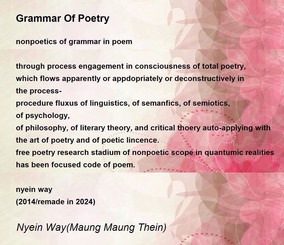 nonpoetics of grammar in poem