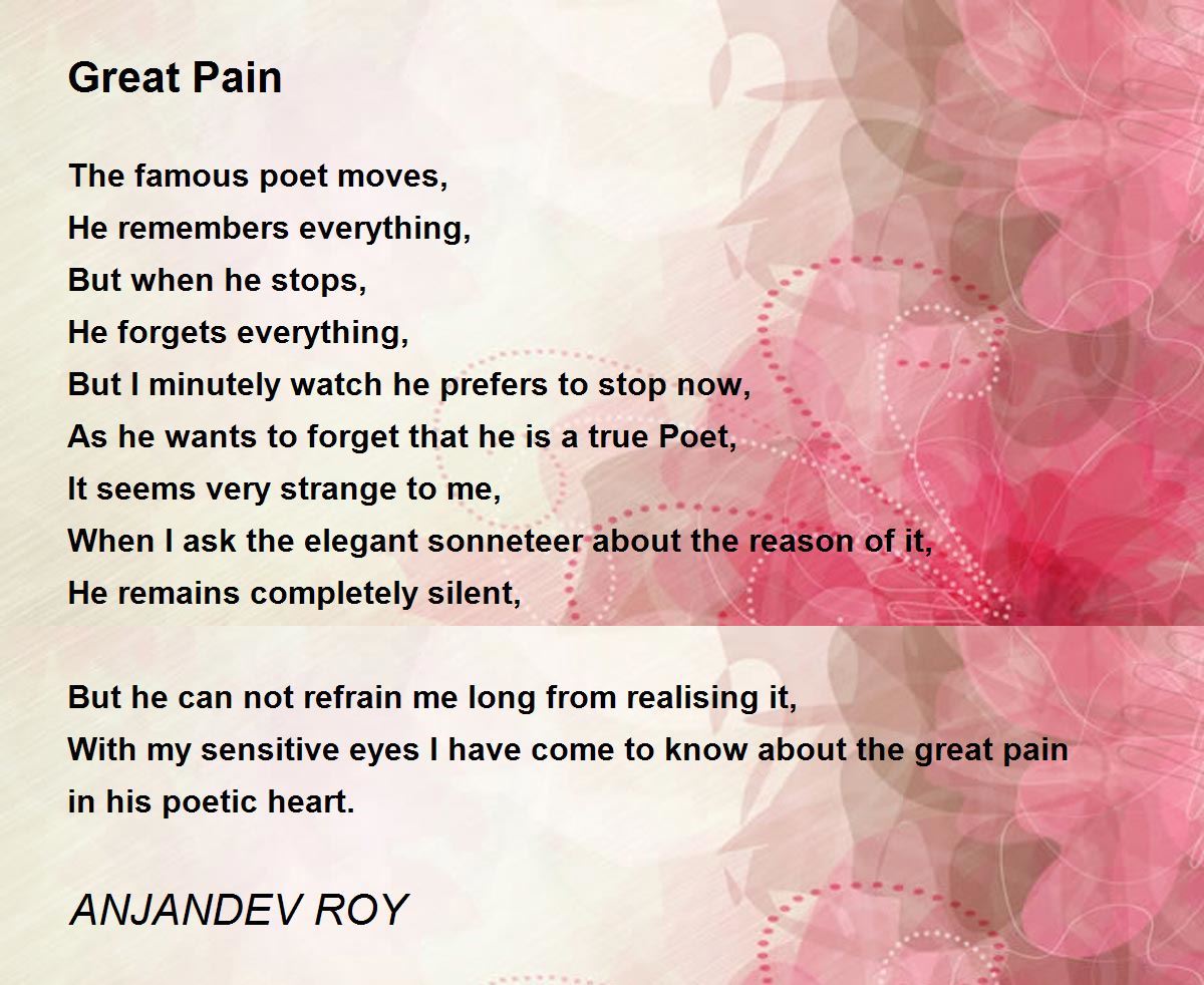 With my sensitive eyes I have come to know about the great pain in his poetic heart.