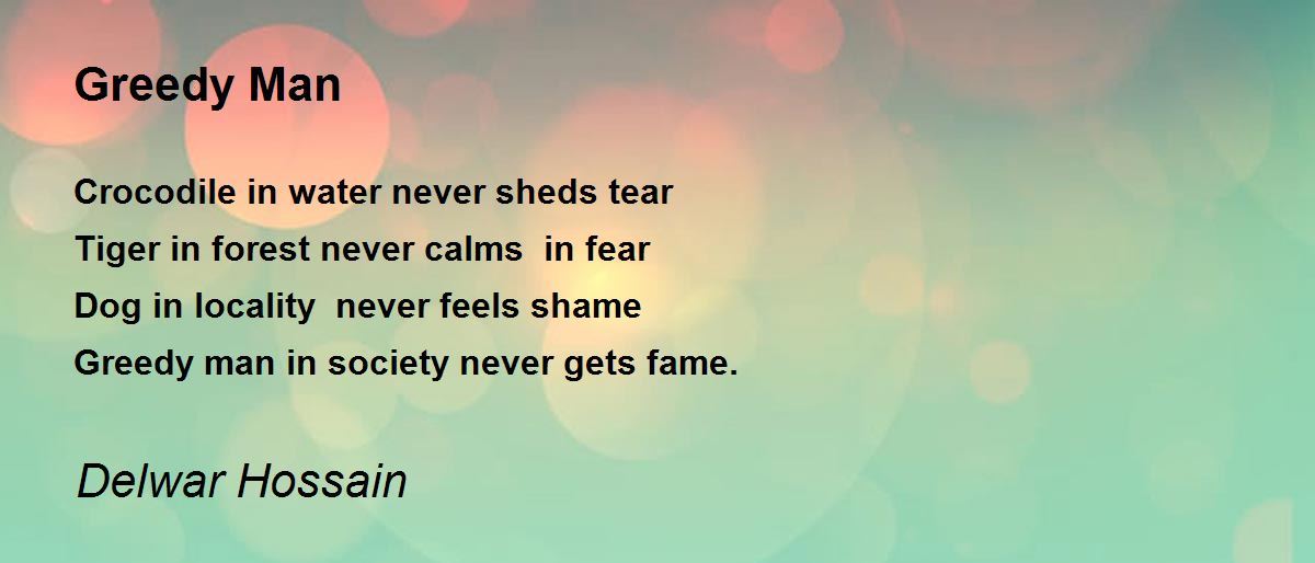 Greedy man in society never gets fame.