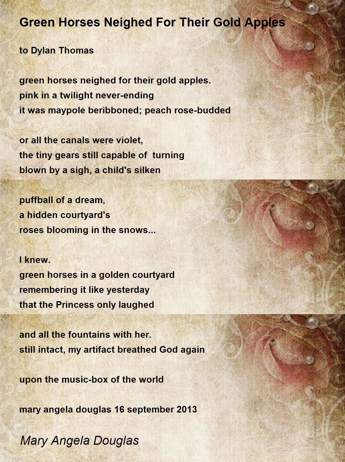 green horses neighed for their gold apples.