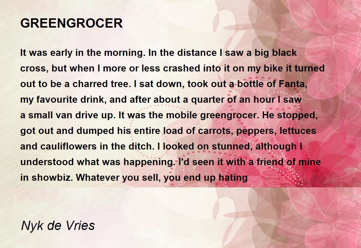 It was early in the morning. In the distance I saw a big black cross, but when I more or less crashed into it on my bike it turned out to be a charred tree. I sat down, took out a bottle of Fanta, my favourite drink, and after about a quarter of an hour I saw a small van drive up. It was the mobile greengrocer. He stopped, got out and dumped his entire load of carrots, peppers, lettuces and cauliflowers in the ditch. I looked on stunned, although I understood what was happening. I'd seen it with a friend of mine in showbiz. Whatever you sell, you end up hating