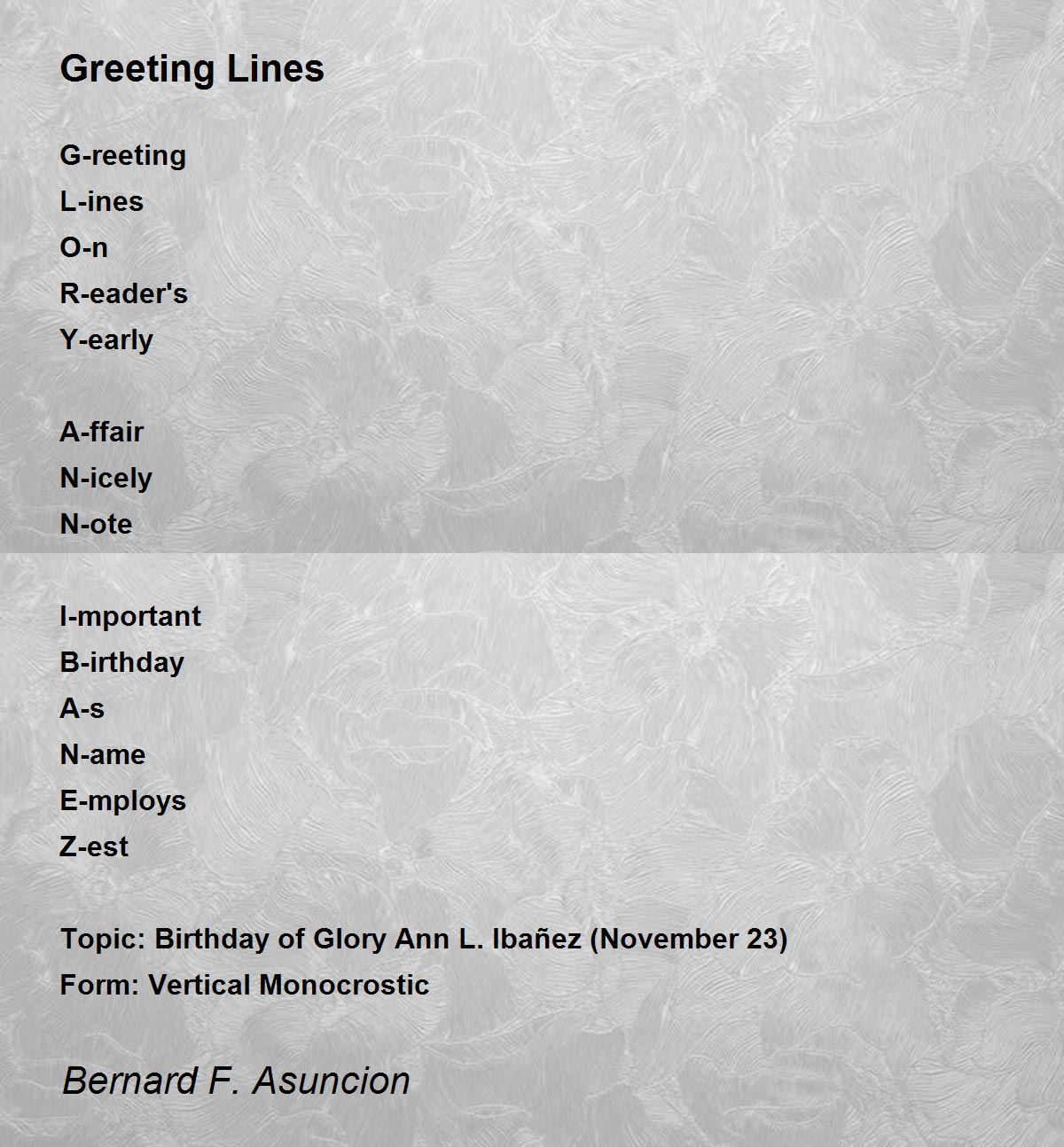Topic: Birthday of Glory Ann L. Ibañez (November 23)