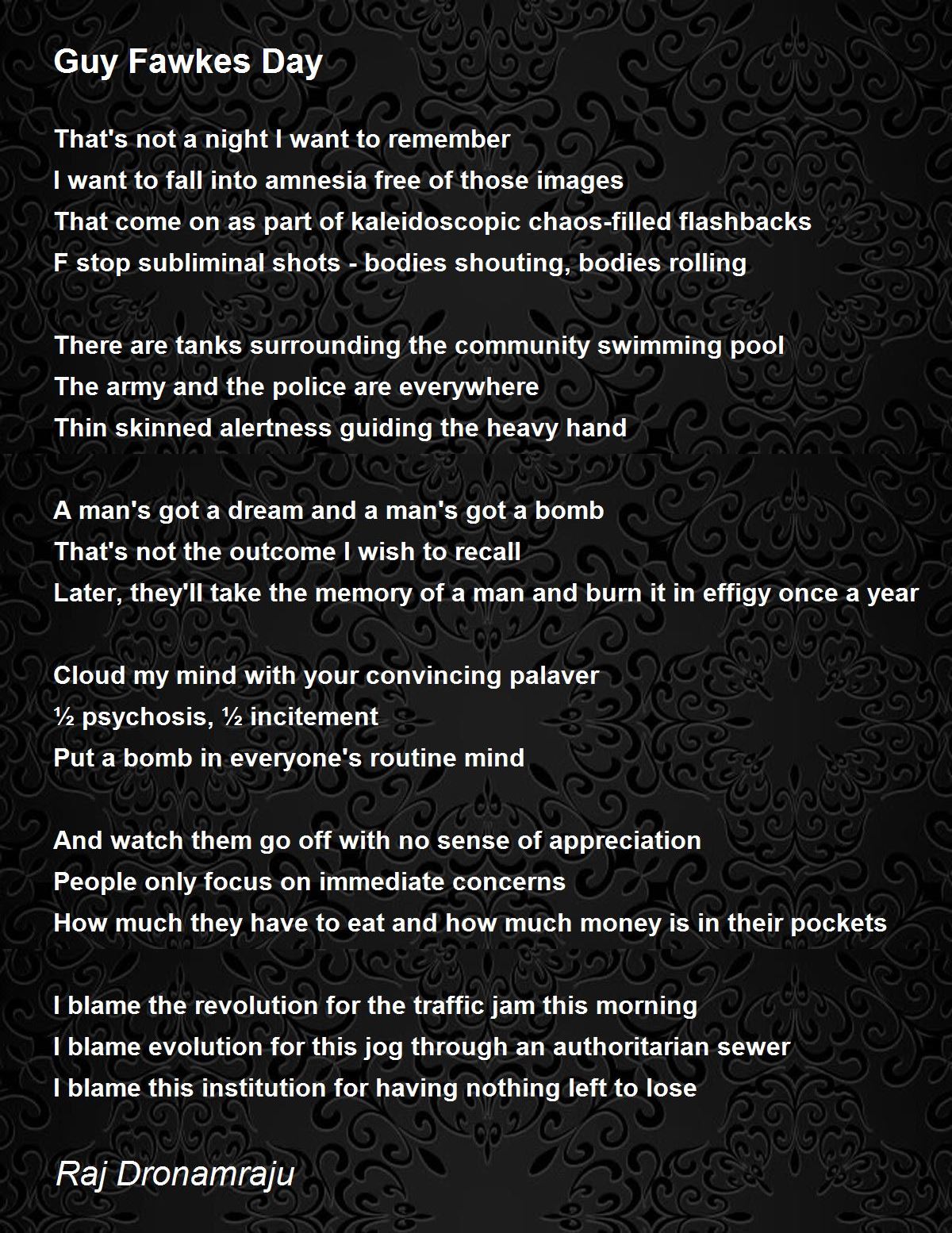 Later, they'll take the memory of a man and burn it in effigy once a year