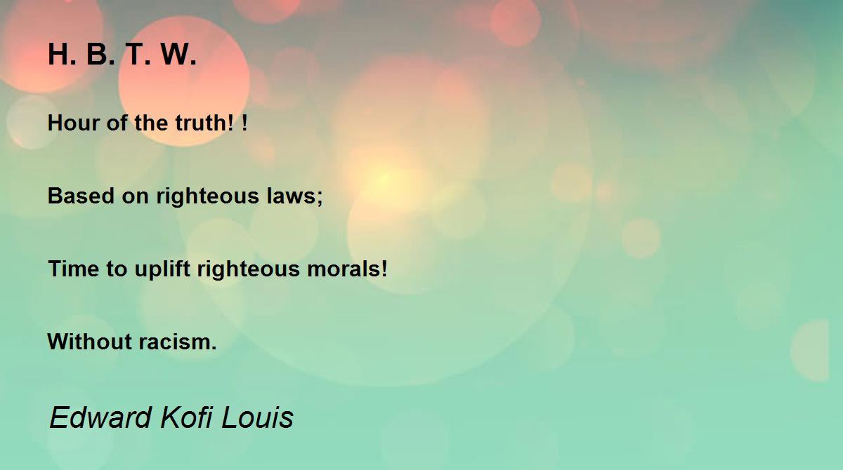 Without racism! ! ! Only with the truth! Unity is the key. Thanks for your comment on my poem. Stay blessed always.