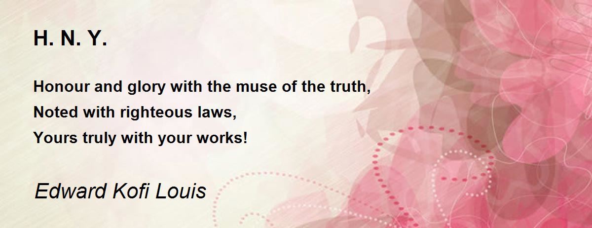 Honour and glory with the muse of the truth, Noted with righteous laws, Yours truly with your works!