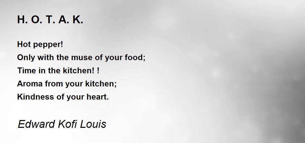 Hot pepper! Only with the muse of your food; Time in the kitchen! ! Aroma from your kitchen; Kindness of your heart.