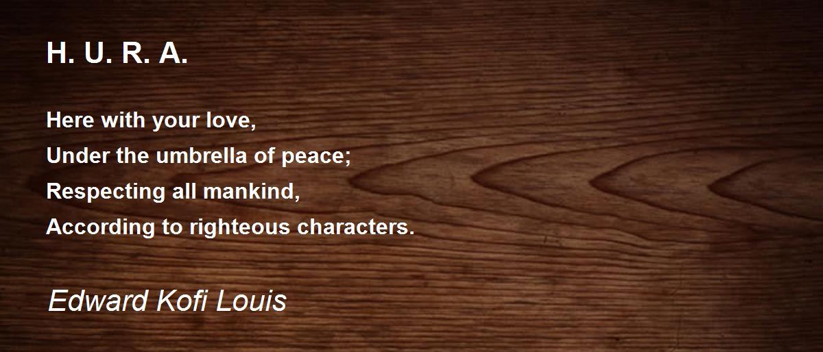 Here with your love, Under the umbrella of peace; Respecting all mankind, According to righteous characters.