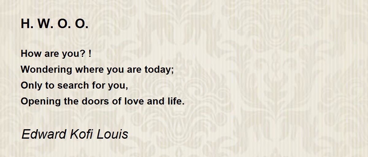 How are you? ! Wondering where you are today; Only to search for you, Opening the doors of love and life.