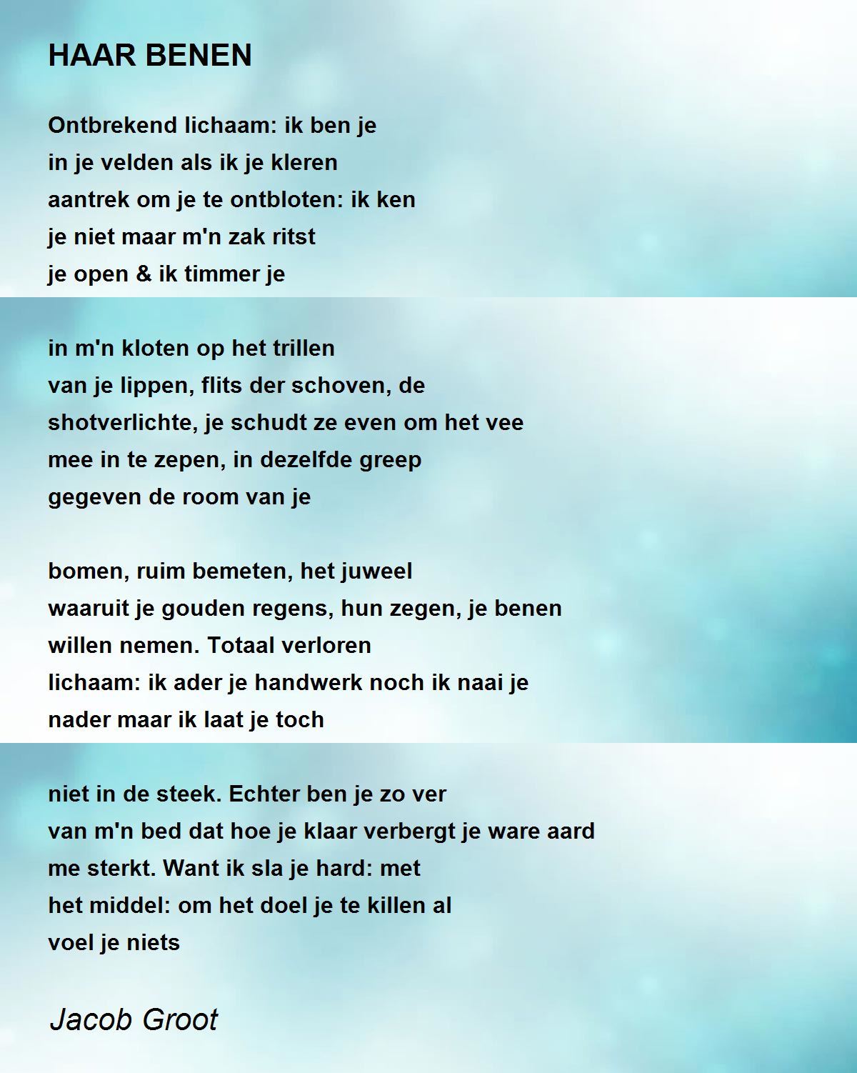 waaruit je gouden regens, hun zegen, je benen