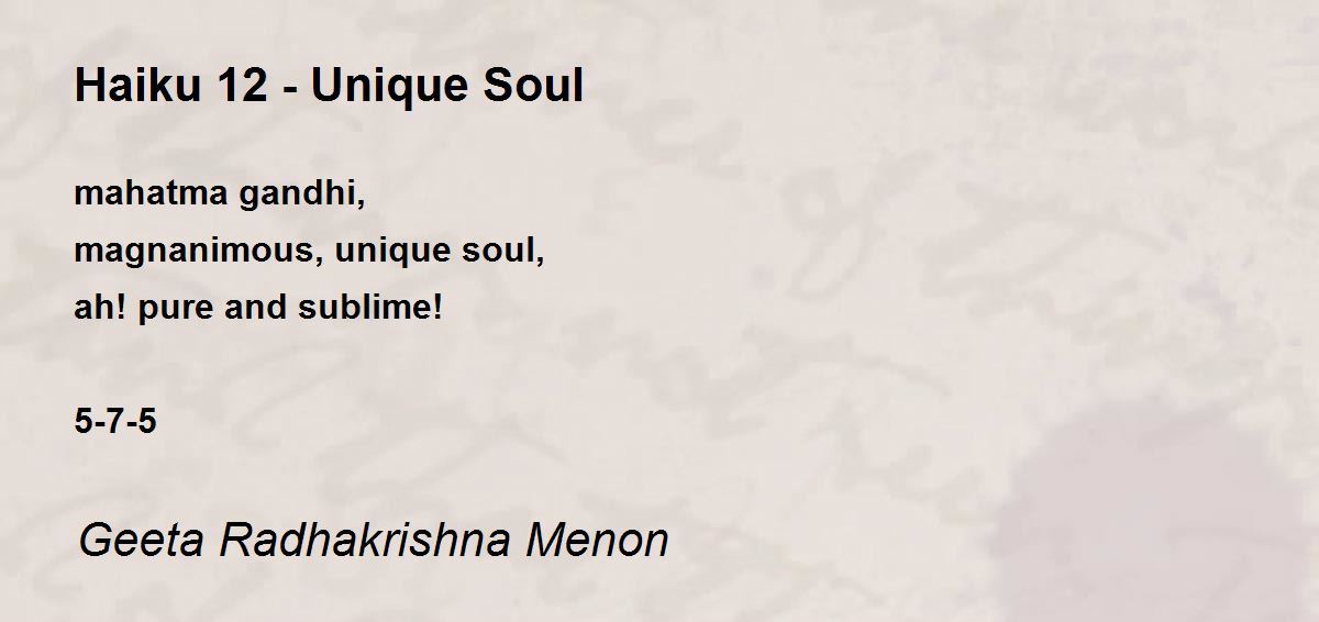Beautiful words to glorify the great Mahatmi Gandhi. An acknowledgment of his exemplary character and righteous deeds in a wonderful poetic form.
