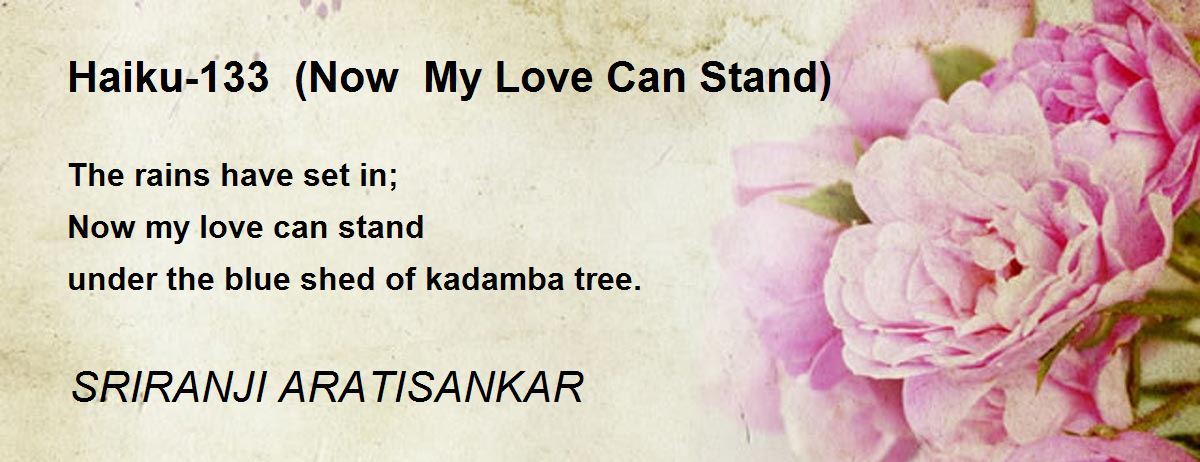 The rains have set in; Now my love can stand under the blue shed of kadamba tree.
