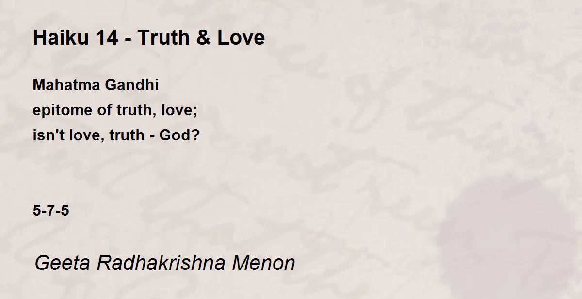 Gandhi considered God to be truth and truth to be God. And love is the only means to find truth. Great thoughts of a great man. Wonderful thoughts to live by. Thank you for sharing this wisdom filled haiku, Dr. Geeta.