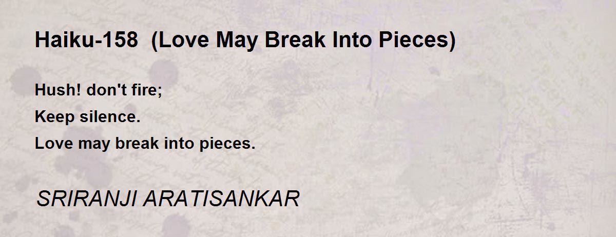 Hush! don't fire; Keep silence. Love may break into pieces.
