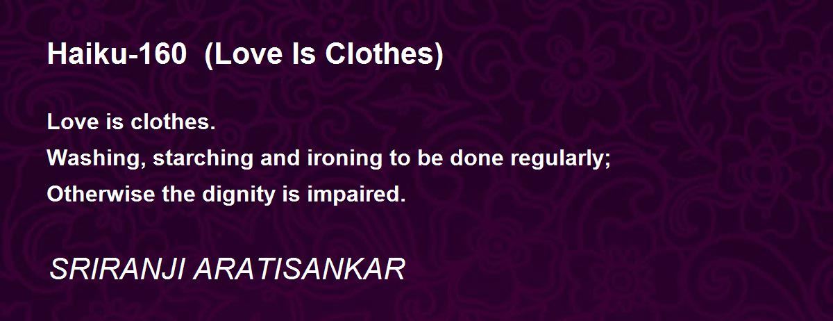 Love is clothes. Washing, starching and ironing to be done regularly; Otherwise the dignity is impaired.