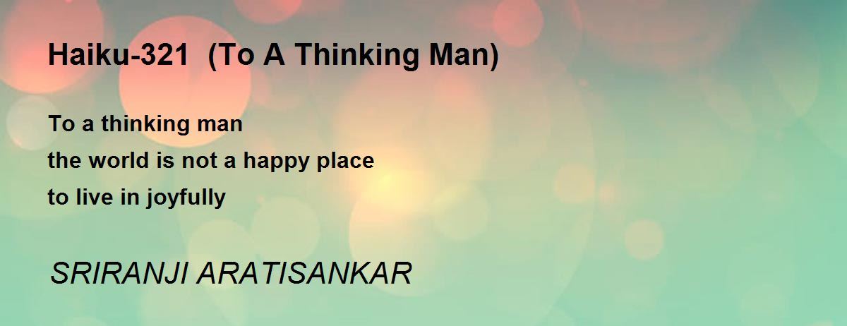 To a thinking man the world is not a happy place to live in joyfully